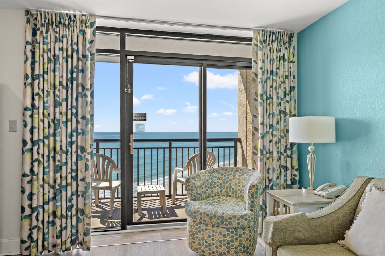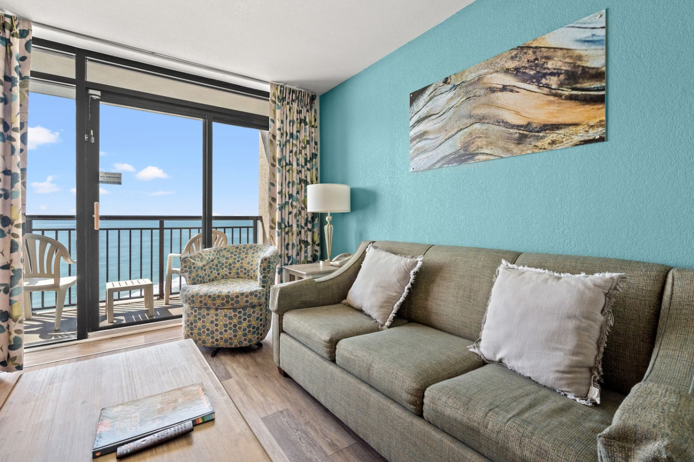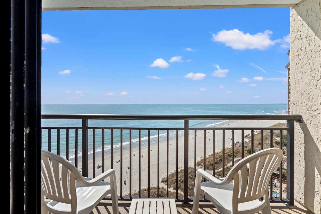 Welcome to “Dolphin's Cove” a Myrtle Stays Property in North Myrtle Beach. Amazing Panoramic Views Amenities Include: - 2 Queen beds in Main Bedroom - Full Bathroom with double vanity, toilet, and Shower/Tub. - Stocked Kitchen: * Full Refrigerator * Stovetop Burners * Drip Coffee Maker * Sink * Microwave - 1 Queen Sofa sleeper in Living room - 3 Outdoor Pools (Seasonally Heated) - Lazy River 350ft - 2 Outdoor hot tubs - Indoor pool and hot tub - Centrally Located The Dolphin's Cove is located on the 11th floor of Tower A at Beach Cove Resort in North Myrtle Beach. This gorgeous and cozy beach escape is the perfect short-stay location for a small gathering or family vacation. HIGHLIGHTS & AMENITIES - Two luxurious queen-size beds in main bedroom - Queen sleeper sofa for extra guests - Private balcony with direct ocean views - Beach Umbrella and Chairs seasonally rented - Complimentary Wi-Fi - Self check-in keypad entry - Three seasonally heated outdoor pools - Outdoor kiddie pool - 350-foot lazy river - Three outdoor hot tubs - Heated indoor pool - Relaxing indoor hot tub - Poolside bar KITCHEN AND LIVING ROOM: Step into a spacious, open-concept layout featuring a comfortable living area with seating for four with an amazing panoramic ocean view of the North Myrtle Beach Skyline and a 43” Smart TV. For those cozy nights in, the kitchen offers everything needed for a homemade meal, including brand new modern appliances, granite countertops, a 2-burner stovetop, coffee maker, toaster, blender, and all essential cookware. Gather around the 4-person dining table for a meal with ocean views as the perfect backdrop BALCONY: Step onto your private balcony overlooking the pools, gorgeous North Myrtle Beach coastline, and take in the stunning ocean views from any of the four cozy balcony chairs.. BEDROOM: The bedroom offers two luxurious queen-size memory foam beds, perfect for a restful night's sleep. Two spacious closets provide ample storage, allowing you to unpack and feel right at home. NEARBY: - Barefoot Landing – Only 0.6 miles away - Duplin Winery – A short 0.8-mile drive - House of Blues Myrtle Beach – Just 0.9 miles nearby - Alabama Theatre – 1 mile from the property - Blueberry’s Grill – Only 1.2 miles for a delicious breakfast or brunch - Broadway at the Beach – 14 miles for shopping and entertainment - Myrtle Beach International Airport – Conveniently 16 miles away As a guest, you’ll have full access to the condo and the below the resort amenities during your stay. Amenities include: - Outdoor heated pools - Indoor pool - Indoor hot tubs - Lazy river - On-site laundry facilities - Free Wi-Fi and cable - Secure parking in the resort’s lot You’ll also have access to the direct oceanfront beach area, just steps from the resort. Bypass the front desk heck-in is easy and convenient, with keyless entry to the condo, so you can enjoy a hassle-free arrival and departure. Note: The on-site restaurant, arcade, and fitness center is for owners you’ll have access to all other amenities mentioned above. The front desk is not associated with your stay. As a guest, you’ll have full access to the condo and the below the resort amenities during your stay. Amenities include: - Outdoor heated pools - Indoor pool - Indoor hot tubs - Lazy river - On-site laundry facilities - Free Wi-Fi and cable - Secure parking in the resort’s lot You’ll also have access to the direct oceanfront beach area, just steps from the resort. Bypass the front desk heck-in is easy and convenient, with keyless entry to the condo, so you can enjoy a hassle-free arrival and departure. Note: The on-site restaurant, arcade, and fitness center is for owners you’ll have access to all other amenities mentioned above. The front desk is not associated with your stay. Overview: Beach Cove Resort is located in the Windy Hill section of North Myrtle Beach, South Carolina, an area known for its beautiful oceanfront views, laid-back atmosphere, and convenient access to top attractions. The resort sits right along the coastline, offering a tropical escape with swaying palm trees, pools, and direct beach access. Surrounding Area & Attractions: Barefoot Landing (1 mile away): A premier shopping, dining, and entertainment complex featuring waterfront boardwalks, boutique shops, and attractions like the Alabama Theatre and Alligator Adventure. House of Blues (1 mile away): A popular venue for live music and events. Duplin Winery (1.5 miles away): A must-visit for wine lovers offering tastings of locally produced Muscadine wines. Tanger Outlets (3 miles away): A shopping destination with brand-name discounts. Cherry Grove Pier (5 miles away): A great spot for fishing and sightseeing. Beach & Outdoor Activities: The Windy Hill Beach area is known for its wide, sandy shoreline, making it perfect for sunbathing, beachcombing, and water activities. Several golf courses, including the Barefoot Golf Resort, are nearby for golf enthusiasts. Water sports, fishing charters, and dolphin cruises are available at nearby marinas. Dining & Nightlife: 21 Main Prime Steakhouse: A fine dining option with excellent seafood and steak. Flying Fish Public Market & Grill: A casual seafood restaurant at Barefoot Landing with waterfront views. Joe’s Bar & Grill: A cozy dining spot with marsh views, known for fresh seafood and steaks. Greg Norman’s Australian Grille: A waterfront restaurant with high-end cuisine and a great wine selection. Community & Atmosphere: The Windy Hill area of North Myrtle Beach is a quieter, family-friendly part of the Grand Strand. It attracts vacationers looking for a mix of relaxation and entertainment without the constant hustle of downtown Myrtle Beach. The neighborhood has a welcoming and safe feel, making it ideal for both families and retirees. Getting Around – Beach Cove Resort, North Myrtle Beach Beach Cove Resort is in a prime location, making it easy to explore North Myrtle Beach and beyond. H