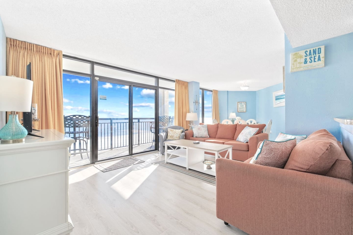 Step onto your private direct oceanfront balcony overlooking the pools, gorgeous North Myrtle Beach coastline, and take in the stunning ocean views from any of the 3 rooms.
