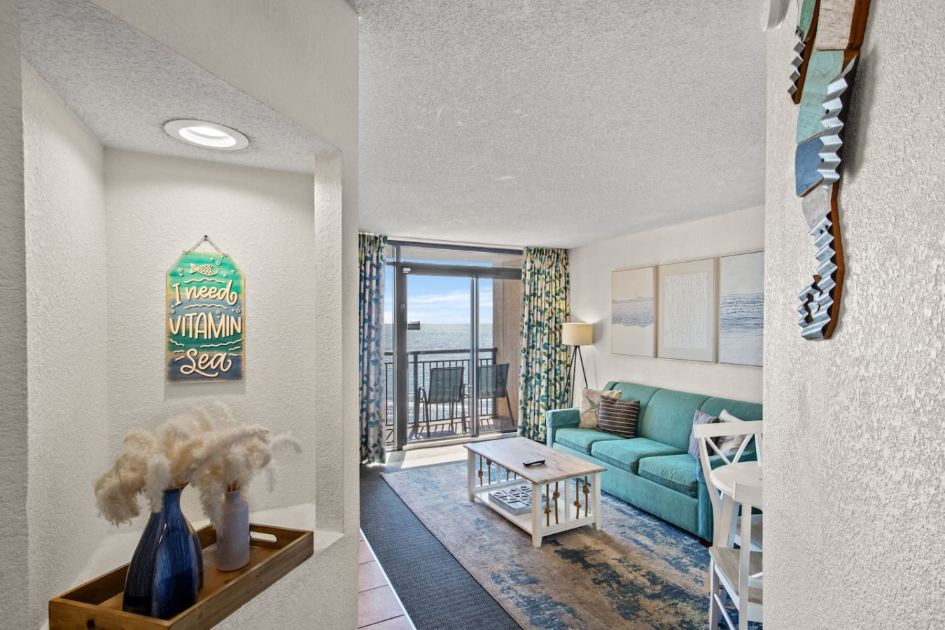 Welcome to “Megan's Cove” a Myrtle Stays Property in North Myrtle Beach. Amazing Sunrise Ocean Views Amenities Include: - 2 Queen beds in Main Bedroom - Full Bathroom with double vanity, toilet, and Shower/Tub. - Stocked Kitchen: * Full Refrigerator * Stovetop 2-Burners * Drip Coffee Maker * Sink * Microwave - 1 Queen Sofa sleeper in Living room - 3 Outdoor Pools (Seasonally Heated) - Lazy River 350ft - 2 Outdoor hot tubs - Indoor pool and hot tub Megan's Cove is located on the 12th floor of Tower B "The Sunrise Tower" at Beach Cove Resort in North Myrtle Beach. This gorgeous beach escape is the perfect short-stay location for a small gathering or family vacation. HIGHLIGHTS & AMENITIES - Two luxurious queen-size beds in main bedroom - Queen sleeper sofa for extra guests - Private balcony with direct ocean views - Beach Umbrella and Chairs seasonally rented - Complimentary Wi-Fi - Self check-in keypad entry - Three seasonally heated outdoor pools - Outdoor kiddie pool - 350-foot lazy river - Three outdoor hot tubs - Heated indoor pool - Relaxing indoor hot tub - Poolside bar KITCHEN AND LIVING ROOM: Step into a spacious, open-concept layout featuring a comfortable living area with seating for four with an amazing panoramic ocean view of the North Myrtle Beach Skyline and a 43” Smart TV. For those cozy nights in, the kitchen offers everything needed for a homemade meal, including brand new modern appliances, granite countertops, a 2-burner stovetop, coffee maker, toaster, blender, and all essential cookware. Gather around the 4-person dining table for a meal with ocean views as the perfect backdrop BALCONY: Step onto your gorgeous end-unit private Penthouse balcony which gives you panoramic views overlooking the pools, beautiful North Myrtle Beach coastline, and take in the stunning ocean views from any of the four cozy balcony chairs.. BEDROOM: The bedroom offers two luxurious queen-size memory foam beds, perfect for a restful night's sleep. Two spacious closets provide ample storage, allowing you to unpack and feel right at home. Unwind in the evening in front of the 40" TV in the main bedroom. NEARBY: - Barefoot Landing – Only 0.6 miles away - Duplin Winery – A short 0.8-mile drive - House of Blues Myrtle Beach – Just 0.9 miles nearby - Alabama Theatre – 1 mile from the property - Blueberry’s Grill – Only 1.2 miles for a delicious breakfast or brunch - Broadway at the Beach – 14 miles for shopping and entertainment - Myrtle Beach International Airport – Conveniently 16 miles away As a guest, you’ll have full access to the condo and the below the resort amenities during your stay. Amenities include: - Outdoor heated pools - Indoor pool - Indoor hot tubs - Lazy river - On-site laundry facilities - Free Wi-Fi and cable - Secure parking in the resort’s lot You’ll also have access to the direct oceanfront beach area, just steps from the resort. Bypass the front desk check-in is easy and convenient, with keyless entry to the condo, so you can enjoy a hassle-free arrival and departure. Note: The on-site restaurant, arcade, and fitness center is for owners you’ll have access to all other amenities mentioned above. The front desk is not associated with your stay. Self-Check-In: Guests can enjoy the convenience of self-check-in with a keyless entry system, providing flexibility for arrival times. Available as Needed: While we respect your privacy during your stay, we are just a message or phone call away if you need assistance or have any questions. Local Tips & Recommendations: We’re happy to provide personalized recommendations for dining, attractions, and activities in the area to help make your stay even more enjoyable. Feel free to connect, and we’ll ensure you have everything you need for a memorable stay! Overview: Beach Cove Resort is located in the Windy Hill section of North Myrtle Beach, South Carolina, an area known for its beautiful oceanfront views, laid-back atmosphere, and convenient access to top attractions. The resort sits right along the coastline, offering a tropical escape with swaying palm trees, pools, and direct beach access. Surrounding Area & Attractions: Barefoot Landing (1 mile away): A premier shopping, dining, and entertainment complex featuring waterfront boardwalks, boutique shops, and attractions like the Alabama Theatre and Alligator Adventure. House of Blues (1 mile away): A popular venue for live music and events. Duplin Winery (1.5 miles away): A must-visit for wine lovers offering tastings of locally produced Muscadine wines. Tanger Outlets (3 miles away): A shopping destination with brand-name discounts. Cherry Grove Pier (5 miles away): A great spot for fishing and sightseeing. Beach & Outdoor Activities: The Windy Hill Beach area is known for its wide, sandy shoreline, making it perfect for sunbathing, beachcombing, and water activities. Several golf courses, including the Barefoot Golf Resort, are nearby for golf enthusiasts. Water sports, fishing charters, and dolphin cruises are available at nearby marinas. Dining & Nightlife: 21 Main Prime Steakhouse: A fine dining option with excellent seafood and steak. Flying Fish Public Market & Grill: A casual seafood restaurant at Barefoot Landing with waterfront views. Joe’s Bar & Grill: A cozy dining spot with marsh views, known for fresh seafood and steaks. Greg Norman’s Australian Grille: A waterfront restaurant with high-end cuisine and a great wine selection. Community & Atmosphere: The Windy Hill area of North Myrtle Beach is a quieter, family-friendly part of the Grand Strand. It attracts vacationers looking for a mix of relaxation and entertainment without the constant hustle of downtown Myrtle Beach. The neighborhood has a welcoming and safe feel, making it ideal for both families and retirees. Getting Around – Beach Cove Resort, North Myrtle Beach Beach Cove Resort is in a prime location, making it easy to explore North Myrtle Beach and beyond. Here are the bes