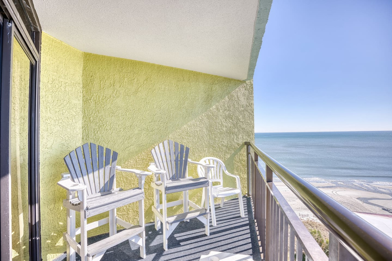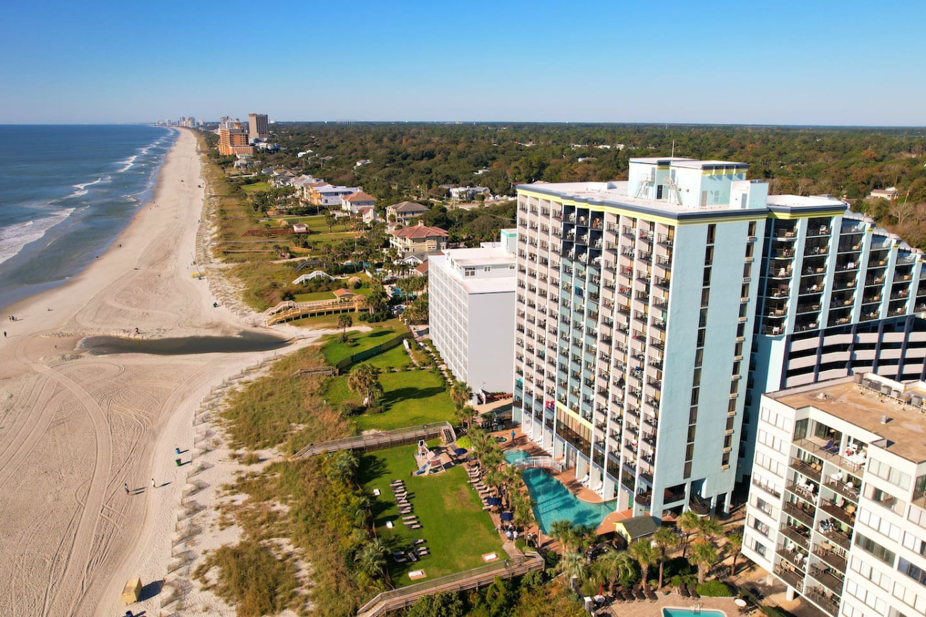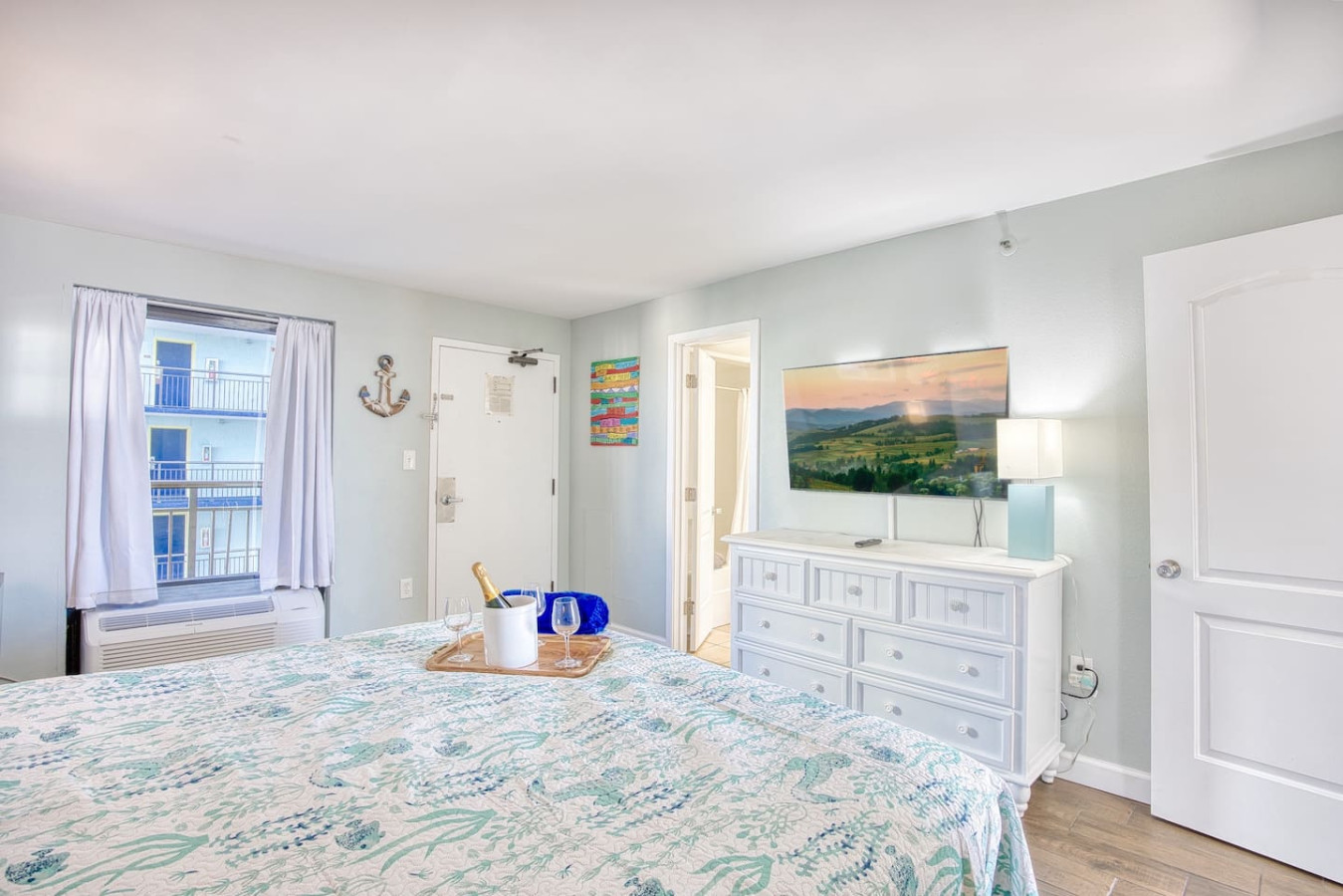 Welcome to “Kaye’s Beach Retreat” a Myrtle Stays Property at Monterey Bay Suites Resort in Myrtle Beach. This charming beach condo is in the coveted upper towers which provides a Rooftop pool view from the main bedroom and a panoramic ocean and Myrtle Beach skyline view from the living room. Amenities: - King Bed in Main Bedroom - Workspace - Queen Murphy Bed in Living room - Full Kitchen & Bathroom - Ground-level pools, Hot tub, and Lazy River - Rooftop Pool (seasonally heated) with Hot tub About the Space Welcome to your home away from home at Monterey Bay, Myrtle Beach! This cozy 1-bedroom, 1-bathroom Oceanview condo is perfect for couples, small families, or solo travelers. Situated on a high floor, the unit boasts breathtaking views of the Atlantic Ocean and Myrtle Beach skyline from your private balcony, making it the ideal spot to enjoy sunrises or relax after a day at the beach. Bedroom: The master bedroom features 1 plush king-size bed with high-quality linens, ensuring a comfortable night's sleep. Living Room: A spacious living area with a queen-sized Murphy bed, two love-seats, a dinette table and chairs and a 50" Smart TV. Step out or the balcony and watch the Myrtle Beach fireworks. Kitchen: Fully equipped with stainless steel appliances, including a refrigerator, stove, microwave, k-cup Keurig and drip coffee maker. Perfect for preparing home-cooked meals. Bathroom: Modern bathroom with a shower/tub combination and fresh towels provided. Key Amenities: - High-speed Wi-Fi - Smart TV with cable in Living Room and Bedroom - Central air conditioning and heating - Private balcony with oceanfront seating - Free parking on the premises Resort Amenities: - Indoor Pools - Indoor Hot tub - Heated Outdoor Pools - 2 Outdoor Hot tubs - Heated Lazy river - Direct Beach Access. As a guest, you’ll have full access to the condo and the below the resort amenities during your stay. Amenities include: - Rooftop Pool (seasonally heated) with Hot tub - Ground-level pools (seasonally heated) - Indoor pool - Indoor hot tubs - Lazy river - Washer and Dryer Laundry area on the 3rd floor - Free Wi-Fi and cable - Secure parking in the resort’s lot You’ll also have access to the direct oceanfront beach area, just steps from the resort. Bypass the front desk check-in is easy and convenient, with keyless entry to the condo, so you can enjoy a hassle-free arrival and departure. Note: The on-site restaurant and fitness center is for owners you’ll have access to all other amenities mentioned above. The front desk is not associated with your stay. Interaction with host is guest-driven Here are the approximate distances from Monterey Bay, Myrtle Beach: - Myrtle Beach International Airport (MYR) – 20 min (9 miles) - Myrtle Beach Boardwalk 12 min (5 miles) - The SkyWheel 12 min (5 miles) - Broadway at the Beach 10 min (4 miles) Restaurants: - Sea Captain's House ★★★★☆ (Seafood, Oceanfront dining) 10 min (4 miles) - Carolina Roadhouse ★★★★☆ (American, Steaks, and Ribs) 8 min (3 miles) - RipTydz ★★★★☆ (Casual, Seafood, Beachfront bar) 12 min (5 miles) Golf Courses: - Myrtlewood Golf Club ★★★★☆ (36-hole, Scenic) 7 min (3 miles) - Pine Lakes Country Club ★★★★☆ (Historic, Challenging) 5 min (2 miles) - Dunes Golf and Beach Club ★★★★★ (Exclusive, Oceanfront) 15 min (6 miles) Shopping: - Broadway at the Beach ★★★★★ (Outdoor, Variety shops) 10 min (4 miles) - Tanger Outlets Hwy 17 ★★★★☆ (Discount brands) 15 min (7 miles) - Coastal Grand Mall ★★★★☆ (Indoor, Major retailers) 18 min (8 miles) Theaters: - Alabama Theatre ★★★★☆ (Live shows, Music) 25 min (12 miles) - Carolina Opry ★★★★★ (Variety shows) 15 min (6 miles) - Legends in Concert ★★★★☆ (Celebrity tribute shows) 12 min (5 miles)
