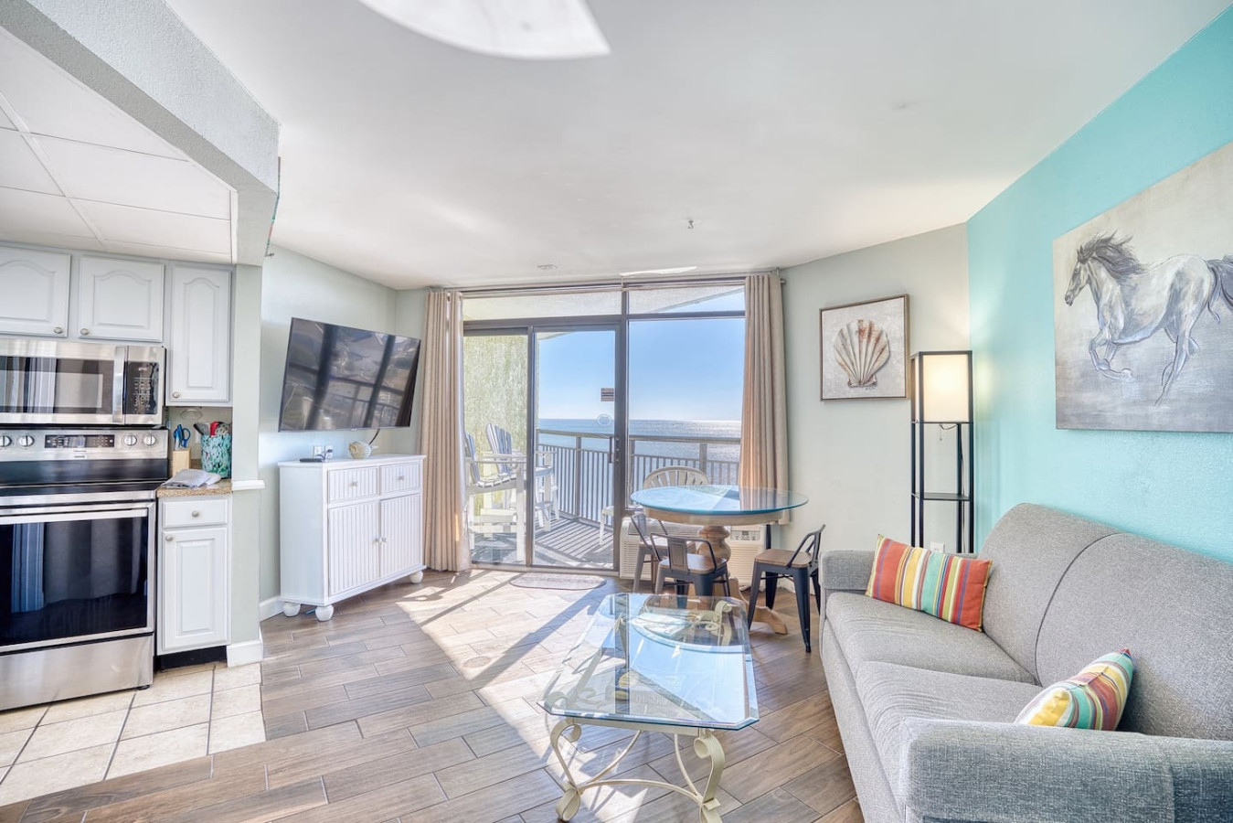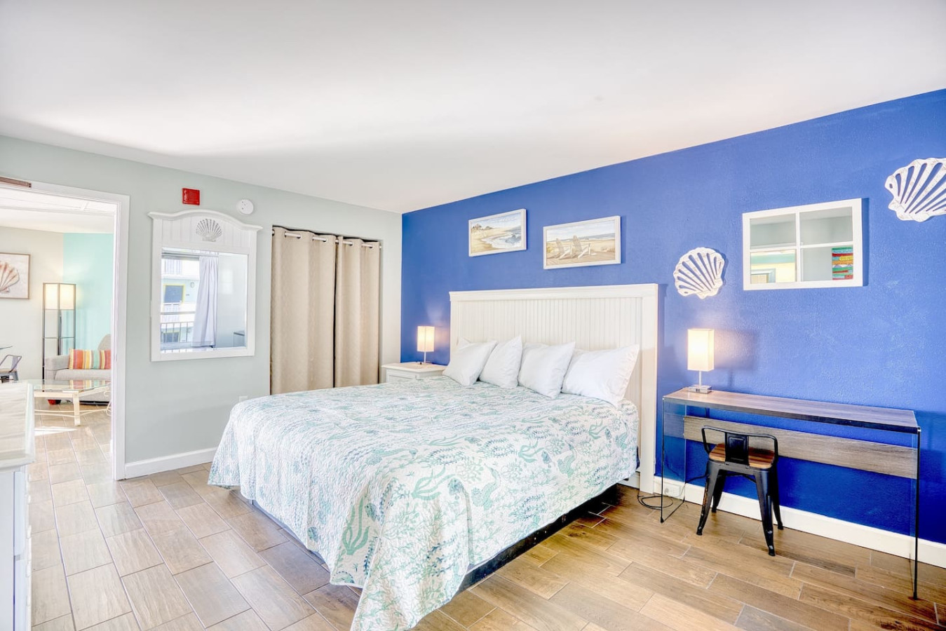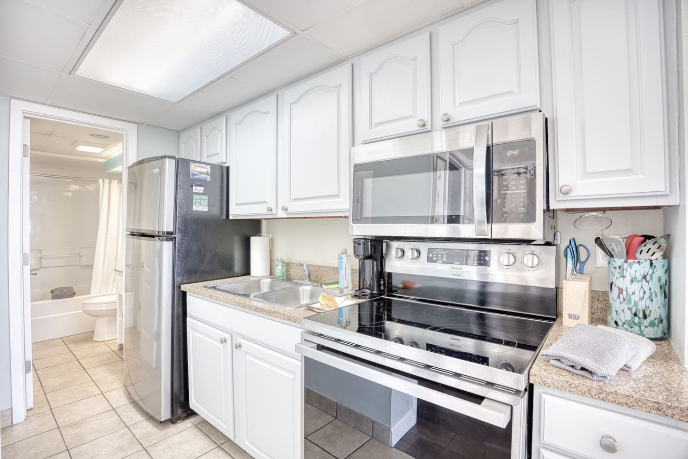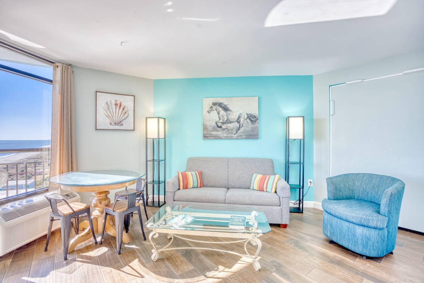 Welcome to “Kaye’s Beach Retreat” a Myrtle Stays Property at Monterey Bay Suites Resort in Myrtle Beach. This charming beach condo is in the coveted upper towers which provides a Rooftop pool view from the main bedroom and a panoramic ocean and Myrtle Beach skyline view from the living room. Amenities: - King Bed in Main Bedroom - Workspace - Queen Murphy Bed in Living room - Full Kitchen & Bathroom - Ground-level pools, Hot tub, and Lazy River - Rooftop Pool (seasonally heated) with Hot tub About the Space Welcome to your home away from home at Monterey Bay, Myrtle Beach! This cozy 1-bedroom, 1-bathroom Oceanview condo is perfect for couples, small families, or solo travelers. Situated on a high floor, the unit boasts breathtaking views of the Atlantic Ocean and Myrtle Beach skyline from your private balcony, making it the ideal spot to enjoy sunrises or relax after a day at the beach. Bedroom: The master bedroom features 1 plush king-size bed with high-quality linens, ensuring a comfortable night's sleep. Living Room: A spacious living area with a queen-sized Murphy bed, two love-seats, a dinette table and chairs and a 50" Smart TV. Step out or the balcony and watch the Myrtle Beach fireworks. Kitchen: Fully equipped with stainless steel appliances, including a refrigerator, stove, microwave, k-cup Keurig and drip coffee maker. Perfect for preparing home-cooked meals. Bathroom: Modern bathroom with a shower/tub combination and fresh towels provided. Key Amenities: - High-speed Wi-Fi - Smart TV with cable in Living Room and Bedroom - Central air conditioning and heating - Private balcony with oceanfront seating - Free parking on the premises Resort Amenities: - Indoor Pools - Indoor Hot tub - Heated Outdoor Pools - 2 Outdoor Hot tubs - Heated Lazy river - Direct Beach Access. As a guest, you’ll have full access to the condo and the below the resort amenities during your stay. Amenities include: - Rooftop Pool (seasonally heated) with Hot tub - Ground-level pools (seasonally heated) - Indoor pool - Indoor hot tubs - Lazy river - Washer and Dryer Laundry area on the 3rd floor - Free Wi-Fi and cable - Secure parking in the resort’s lot You’ll also have access to the direct oceanfront beach area, just steps from the resort. Bypass the front desk check-in is easy and convenient, with keyless entry to the condo, so you can enjoy a hassle-free arrival and departure. Note: The on-site restaurant and fitness center is for owners you’ll have access to all other amenities mentioned above. The front desk is not associated with your stay. Interaction with host is guest-driven Here are the approximate distances from Monterey Bay, Myrtle Beach: - Myrtle Beach International Airport (MYR) – 20 min (9 miles) - Myrtle Beach Boardwalk 12 min (5 miles) - The SkyWheel 12 min (5 miles) - Broadway at the Beach 10 min (4 miles) Restaurants: - Sea Captain's House ★★★★☆ (Seafood, Oceanfront dining) 10 min (4 miles) - Carolina Roadhouse ★★★★☆ (American, Steaks, and Ribs) 8 min (3 miles) - RipTydz ★★★★☆ (Casual, Seafood, Beachfront bar) 12 min (5 miles) Golf Courses: - Myrtlewood Golf Club ★★★★☆ (36-hole, Scenic) 7 min (3 miles) - Pine Lakes Country Club ★★★★☆ (Historic, Challenging) 5 min (2 miles) - Dunes Golf and Beach Club ★★★★★ (Exclusive, Oceanfront) 15 min (6 miles) Shopping: - Broadway at the Beach ★★★★★ (Outdoor, Variety shops) 10 min (4 miles) - Tanger Outlets Hwy 17 ★★★★☆ (Discount brands) 15 min (7 miles) - Coastal Grand Mall ★★★★☆ (Indoor, Major retailers) 18 min (8 miles) Theaters: - Alabama Theatre ★★★★☆ (Live shows, Music) 25 min (12 miles) - Carolina Opry ★★★★★ (Variety shows) 15 min (6 miles) - Legends in Concert ★★★★☆ (Celebrity tribute shows) 12 min (5 miles)