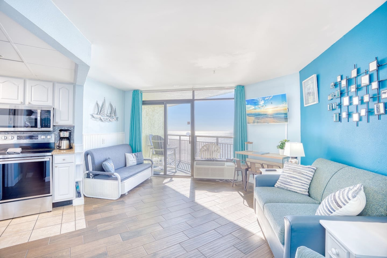 Welcome to “Kaye’s Sunset Retreat” a Myrtle Stays Property located on the 15th floor at Monterey Bay Suites Resort. Amenities: - Panorama Oceanview & Sunset view over Myrtle Beach from the balcony - Sleeps 6 - Main Bedroom 2 Queen-sized Beds - Living room 1 Double Murphy bed Ground Level: * Pools (seasonally heated) * Hot tub * Lazy River * Seasonal Poolside Bar Rooftop Pool: * Pool (seasonally heated) * Hot tub - Stocked Kitchen with major appliances. - Smart TV’s About the Space Welcome to your home away from home at Monterey Bay, Myrtle Beach! This cozy 1-bedroom, 1-bathroom Oceanview condo is perfect for couples, small families, or solo travelers. Situated on a high floor, the unit boasts breathtaking views of the Atlantic Ocean and Myrtle Beach skyline from your private balcony, making it the ideal spot to enjoy sunrises or relax after a day at the beach. Bedroom: The master bedroom features 2 plush queen-size bed with high-quality linens, ensuring a comfortable night's sleep. Living Room: A spacious living area with a Double Murphy bed, two love-seats, a dinette table and chairs and a 50" Smart TV. Step out or the balcony and watch the Myrtle Beach fireworks. Kitchen: Fully equipped with stainless steel appliances, including a refrigerator, stove, microwave, k-cup Keurig and drip coffee maker. Perfect for preparing home-cooked meals. Bathroom: Modern bathroom with a shower/tub combination and fresh towels provided. Key Amenities: - High-speed Wi-Fi - Smart TV with cable in Living Room and Bedroom - Central air conditioning and heating - Private balcony with oceanfront seating - Free parking on the premises Resort Amenities: - Indoor Pools - Indoor Hot tub - Heated Outdoor Pools - 2 Outdoor Hot tubs - Heated Lazy river - Direct Beach Access - Fitness Center As a guest, you’ll have full access to the condo and the below the resort amenities during your stay. Amenities include: - Rooftop Pool (seasonally heated) with Hot tub - Ground-level pools (seasonally heated) - Indoor pool - Indoor hot tubs - Lazy river - Washer and Dryer Laundry area on the 3rd - Free Wi-Fi and cable - Secure parking in the resort’s lot You’ll also have access to the direct oceanfront beach area, just steps from the resort. Bypass the front desk heck-in is easy and convenient, with keyless entry to the condo, so you can enjoy a hassle-free arrival and departure. Note: The on-site restaurant is for owners you’ll have access to all other amenities mentioned above. The front desk is not associated with your stay. Interaction with host is guest-driven Neighborhood description - Monterey Bay Suites Resort - Myrtle Beach, SC Welcome to Monterey Bay Suites Resort, a family-friendly retreat located in the heart of Myrtle Beach’s desirable northern section, offering the perfect balance of relaxation and adventure. Nestled along the golden sands of the Atlantic Ocean, this area is ideal for visitors seeking a quieter atmosphere away from the hustle and bustle of the downtown area while still being close to popular attractions. Beachfront Bliss and Outdoor Fun The resort is situated on a pristine stretch of beachfront, perfect for sunbathing, swimming, and long, scenic walks by the shore. Guests can enjoy a variety of water activities, such as parasailing, jet skiing, and paddle boarding, all within a short walk or drive. Family-Friendly Attractions Monterey Bay Suites is just minutes away from several family-friendly hotspots. The nearby Myrtle Beach Boardwalk offers amusements, arcades, and local eateries, while Broadway at the Beach provides a diverse array of shopping, dining, and entertainment options. Barefoot Landing is another popular destination, blending shopping and wildlife attractions, including Alligator Adventure and T.I.G.E.R.S. Preservation Station. Dining and Nightlife This neighborhood offers a mix of casual and fine dining. Guests can explore local seafood restaurants, charming cafes, and oceanfront bars. River City Café and Sea Captain’s House are crowd favorites, serving up delicious coastal dishes just a short drive from the resort. For nightlife lovers, lively entertainment at nearby beach clubs or piano bars provides fun-filled evenings. Parks, Golf, and Nature Outdoor enthusiasts will love the nearby Myrtle Beach State Park and Huntington Beach State Park, both offering scenic trails, bird-watching, and picnic areas. Golfers will appreciate easy access to several world-renowned golf courses, including Pine Lakes Country Club and Grande Dunes Golf Club. A Serene Coastal Escape The Monterey Bay Suites Resort neighborhood is perfect for those looking to unwind, with easy access to the essentials like grocery stores and pharmacies, yet peaceful enough to enjoy the sound of waves at night. This area combines the best of Myrtle Beach—family fun, great dining, and outdoor adventures—within a tranquil setting along the coast. Whether you’re planning a romantic getaway, a family vacation, or a weekend of golf and relaxation, the neighborhood around Monterey Bay Suites offers the perfect place to make lasting memories. Getting Around - Monterey Bay Suites Resort - Myrtle Beach, SC The Monterey Bay Suites Resort is conveniently located, making it easy to explore all that Myrtle Beach has to offer. Whether you're driving in with your own vehicle or relying on local transportation, there are plenty of ways to get around and make the most of your stay. Parking at the Resort On-site parking: Complimentary parking is available for guests at Monterey Bay Suites, including both surface lots and a parking deck. Oversized vehicles: Space may be limited for RVs, trailers, or oversized vehicles, so it's best to contact the resort in advance for parking arrangements. Driving and Car Rentals Personal car: If you’re driving, the resort is conveniently located along North Ocean Boulevard, providing quick access to local attractions and highways. Car rental options: Major car rental agencies, i
