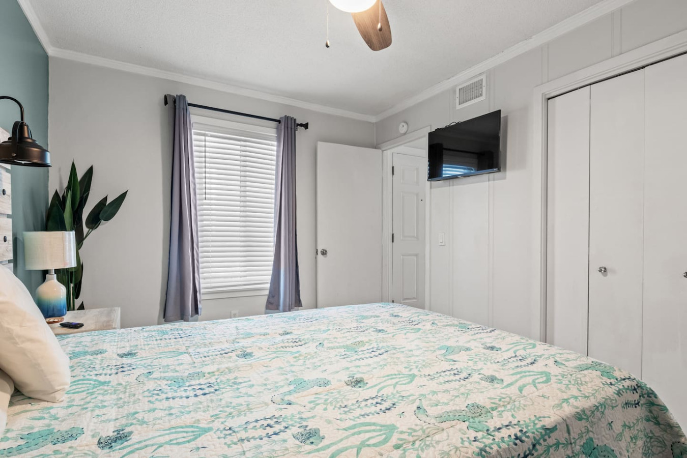 The bedrooms offer one queen-sized bed in the main bedroom and double bed in the guest room, perfect for a restful night sleep, along with a Smart TV to enjoy your favorite shows as you relax in either bedroom. Two spacious closets provide ample storage, allowing you to unpack and feel right at home.