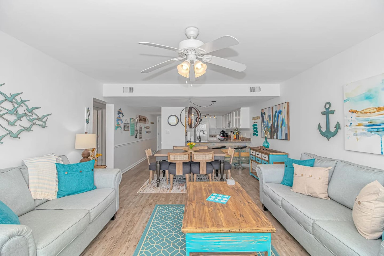 Welcome to “The Family Retreat” a Myrtle Stays Property in Murrells Inlet, SC. Experience a peaceful family beach vacation in the perfect spot. Amenities Include: - 1 King Bed in the Main Bedroom with Smart TV - 1 Full Bed in the Guest Bedroom with Smart TV - 2 Full Bathrooms - 1 Sofa sleeper Stocked Kitchen: * Refrigerator * Full Oven with 4 burner top * k-cup / drip Coffee Maker * Sink * Microwave - Outdoor Pool - Direct Beach Access HIGHLIGHTS & AMENITIES - One king-sized bed in Main Bedroom - One Double bed in guest bedroom - Washer and Dryer in Unit - Private balcony with direct ocean views (Large) - Beach Umbrella and Chairs seasonally rented on the Beach - Complimentary Free WIFI - Self check-in keypad entry - Beachfront Resort Outdoor Pool - Poolside Outdoor Grill - Onsite Restaurant & Bar KITCHEN AND LIVING ROOM: Step into a spacious, open-concept layout featuring a comfortable living area with seating for six and a Smart TV. For those cozy nights in, the kitchen offers everything needed for a homemade meal, including brand new modern appliances, granite countertops, a full stove/oven, microwave range, coffee maker drip and k-pod, toaster, kettle, blender, and all essential cookware. Gather around the formal dining table for a meal with ocean views as the perfect backdrop. Our queen-sized sofa sleeper adds an additional bed for those extra two guests. BALCONY: Step onto your private direct oceanfront balcony overlooking the pool, gorgeous Murrell's Inlet coastline, and take in the stunning ocean views from the Main bedroom and Living room. BEDROOMS: The bedrooms offer one king-sized bed in the main bedroom and double bed in the guest room, perfect for a restful night sleep, along with a Smart TV to enjoy your favorite shows as you relax in either bedroom. Two spacious closets provide ample storage, allowing you to unpack and feel right at home. NEARBY: Horizon East Resort is located in Murrells Inlet, South Carolina, a charming fishing village renowned for its fresh seafood and vibrant entertainment scene. Within walking distance of the resort, you'll find a variety of restaurants, bars, and entertainment venues to enhance your stay. Restaurants and Bars: Drunken Jack's Restaurant & Lounge: Established in 1979, this restaurant offers fresh seafood dishes, steaks, and burgers. Guests can enjoy live music and stunning waterfront views, including sights of Goat Island. Drunken Jacks The Claw House: A New England-style lobster house and oyster bar, The Claw House provides a selection of fresh seafood, including lobster, oysters, and a variety of craft beers. Dead Dog Saloon: This establishment offers a diverse menu featuring seafood, steaks, and sandwiches. With live music and a lively atmosphere, it's a popular spot for both locals and visitors. Wahoo's Fish House: Known for its fresh seafood, sushi, and vibrant nightlife, Wahoo's also features live music, making it a great place for dining and entertainment. Marsh Walk The Wicked Tuna: Offering a "hook to plate" philosophy, The Wicked Tuna serves fresh seafood, including sushi, in a modern setting with waterfront views. Entertainment: Marsh Walk: A short stroll from the resort, the Marsh Walk is a half-mile wooden boardwalk along the waterfront, lined with restaurants, bars, and live music venues. It's an excellent place to experience local culture and enjoy scenic views. Live Music Venues: Many of the restaurants along the Marsh Walk, such as Dead Dog Saloon and Wahoo's Fish House, feature live music regularly, providing a vibrant nightlife scene. With such a diverse selection of dining and entertainment options within walking distance, guests at Horizon East Resort can fully immerse themselves in the rich culture and lively atmosphere of Murrells Inlet. As a guest, you’ll have full access to the condo and the resort amenities during your stay. Amenities include: - Outdoor Beachfront pool - Direct Beach Access - Indoor pool & Hot tub - Washer and Dryer in Unit - Free Wi-Fi and cable - Secure parking in the resort’s lot - Pool Towels are not provided. Bring your favorite beach towels You’ll also have access to the direct oceanfront beach area, just steps from the resort. Bypass the front desk check-in is easy and convenient, with keyless entry to the condo, so you can enjoy a hassle-free arrival and departure. Note: The front desk is not associated with your stay. Self-Check-In: Guests can enjoy the convenience of self-check-in with a keyless entry system, providing flexibility for arrival times. Available as Needed: While we respect your privacy during your stay, we are just a message or phone call away if you need assistance or have any questions. Local Tips & Recommendations: We’re happy to provide personalized recommendations for dining, attractions, and activities in the area to help make your stay even more enjoyable. Feel free to connect, and we’ll ensure you have everything you need for a memorable stay! - This condo is located on the 1st floor providing amazing views for a more peaceful and private stay. The unit is professionally cleaned and sanitized between each guest for your comfort and safety. We provide a starter supply of essentials like paper towels, toilet paper, and trash bags, so you can settle in before needing to shop. - Linens and Towels included and can be swapped out during your stay for a small fee. - Horizon East Resort is centrally located in Murrells Inlet with plenty of food and entertainment options within walking or biking distance. This condo is the perfect blend of convenience and relaxation, making it an ideal choice for beach lovers and those looking for a serene coastal retreat. - Close to Attractions: Located near popular spots in Murrells Inlet Marsh Walk, such as Dead Dog Saloon and Wahoo's Fish House, feature live music regularly, providing a vibrant nightlife scene. - Fully Equipped Kitchen: Save money by cooking your own meals in our fully stocked kitchen, or enjoy nearby r